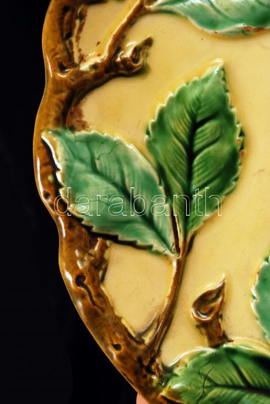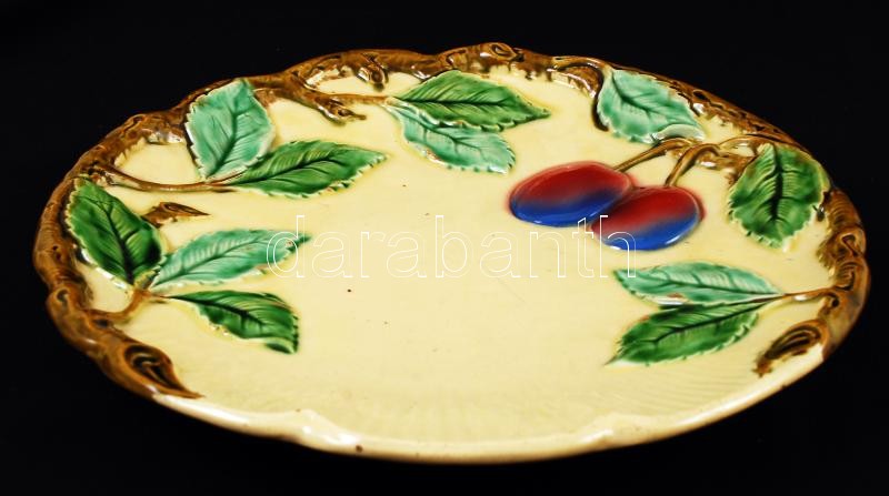 Szecessziós fali dísztányér, kézzel festett, apró mázhibákkal, jelzett...