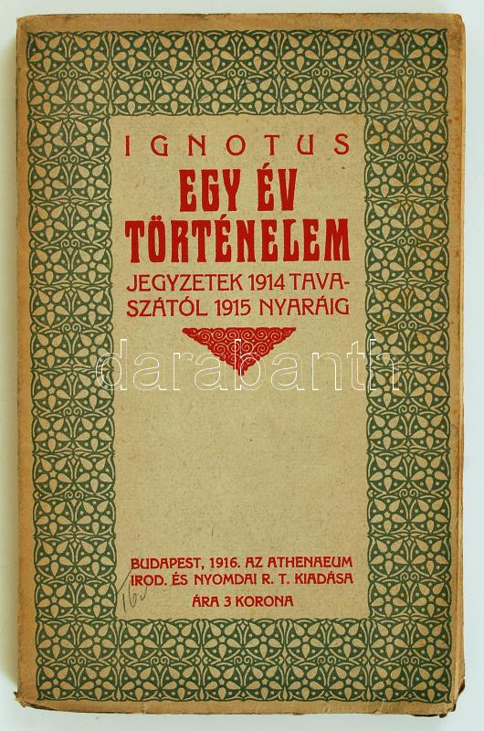 Ignotus: Egy év történelem. Jegyzetek 1914 tavaszától 1915 nyaráig. Bp... https://www.darabanth.com/en/220-Online-auction/220.0/Other-collectibles/Books-History~10041/Ignotus-Egy-ev-tortenelem-Jegyzetek-1914-tavaszatol-1915-nyaraig-Bp-1916-Athenaeum-A-Ny~II943668