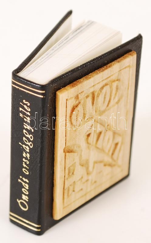 Description: Csorba Csaba: Az ónodi országgyűlés. Miskolc, 1983. Minikönyv, 497. számozott példány, készült 500 példányban, könyvárusi forgalomba nem került. Műbőr kötésben, az elő- és hátlapon lakkozott, faragott fa borítással, jó állapotban.