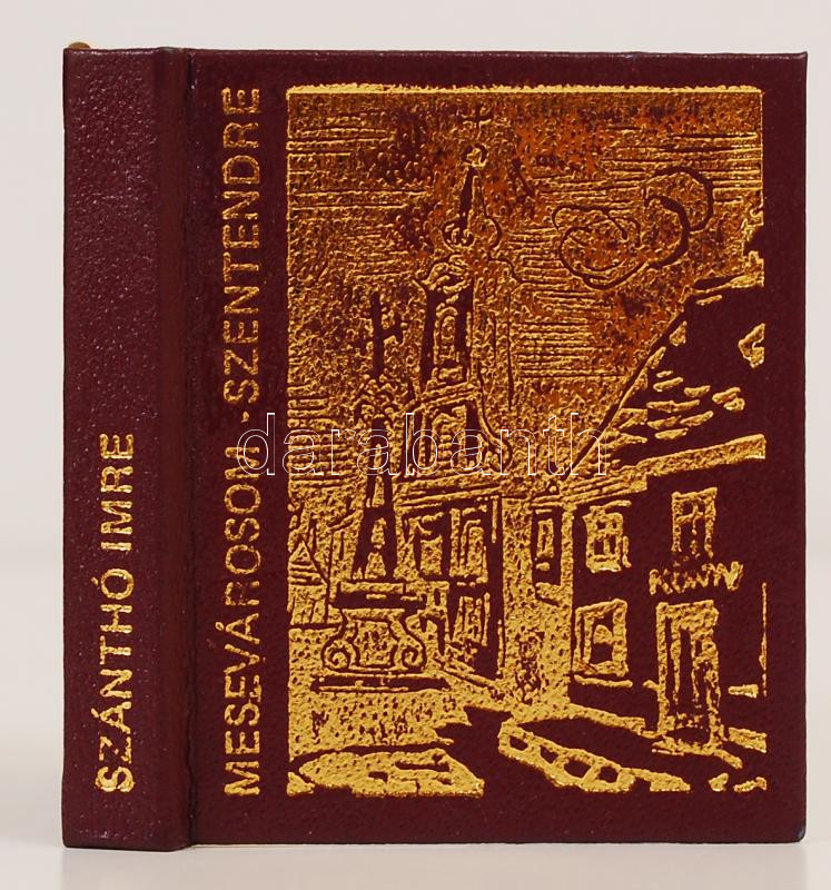 Szánthó Imre: Mesevárosom Szentendre. Bp., 1980, Ságvári Nyomda. Minikönyv. Kiadott példányszám: 350. sorozatszám: 133. Duplán hajtott lapokkal. Fekete-fehér grafikákkal illusztrálva. Aranyozott műbőr kötés, újszerű állapotban.