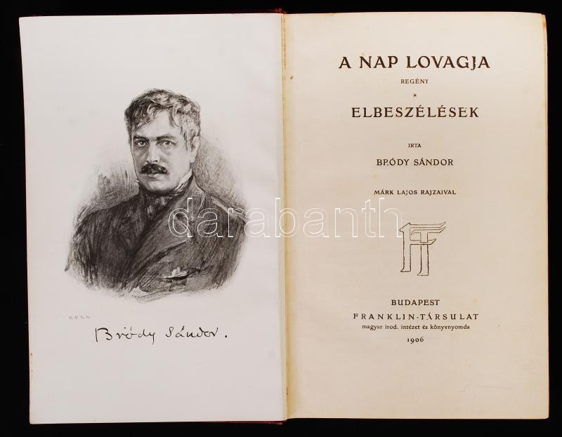 https://www.darabanth.com/en/220-Online-auction/220.0/Other-collectibles/Books-Other-rarities~10027/Brody-Sandor-A-nap-lovagja-Elbeszelesek-Bp-1906-Franklin-Tarsulat-Kicsit-kopott-aranyoz~II944282