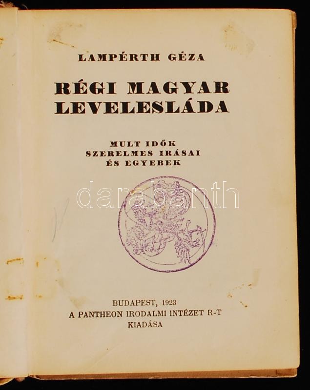 https://www.darabanth.com/en/220-Online-auction/220.0/Other-collectibles/Books-Other-rarities~10027/Lamperth-Geza-Regi-magyar-leveleslada-Mult-idok-szerelmes-irasai-es-egyebek-Bp-1923-Gl~II943050