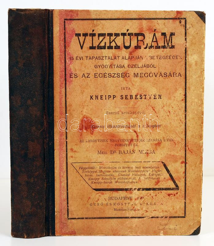 Kneipp Sebestyén: Vízkúrám 35 évi tapasztalat alapján. A betegségek gy... https://www.darabanth.com/en/220-Online-auction/220.0/Other-collectibles/Books-Science-and-technology~10012/Kneipp-Sebestyen-Vizkuram-35-evi-tapasztalat-alapjan-A-betegsegek-gyogyitasa-es-az-ege~II943883