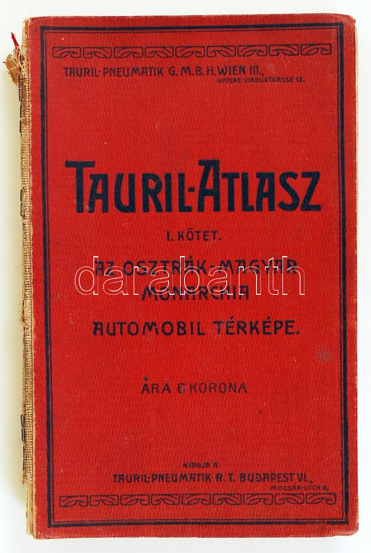 Tauril-Atlasz I. kötet. Az Osztrák-Magyar Monarchia automobil-térképe.... https://www.darabanth.com/en/220-Online-auction/220.0/Other-collectibles/Books-Travelling-cities~10040/Tauril-Atlasz-I-kotet-Az-Osztrak-Magyar-Monarchia-automobil-terkepe-Mertek-1600000-Bp-~II942842