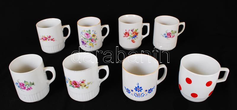 8 db különböző mintájú Zsolnay bögre, jelzett