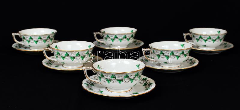Herendi petrezselyem mintás teáscsésze készlet (6db), kézzel festett, ...