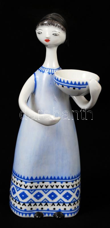 Hollóházi porcelán kézzel festett lány tállal, hibátlan, jelzett, m: ...