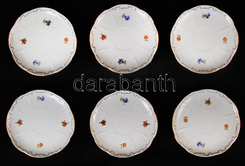 Zsolnay virámintás matricás kistányér, 6 db, hibátlan, jelzett, d: 12 ...