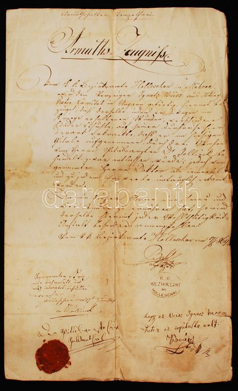 https://www.darabanth.com/en/220-Online-auction/220.0/Other-collectibles/Documents~10002/1864-Holleschau-Nemet-nyelvu-szegenysegi-bizonyitvany-viaszpecsettel-es-ovalbelyegzovel-~II943569