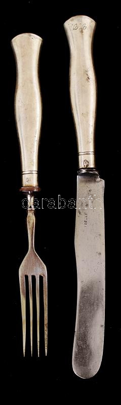 Antik kés és villa "V. V." monogrammal, ezüst (Ag.), jelzett, cca 180 ...