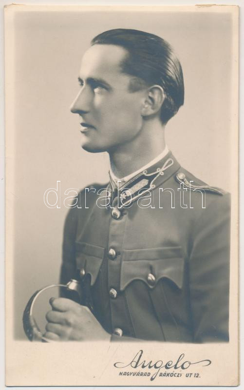1943. március 10. Angelo (Nagyvárad) műtermi portré felvétele egy kato...