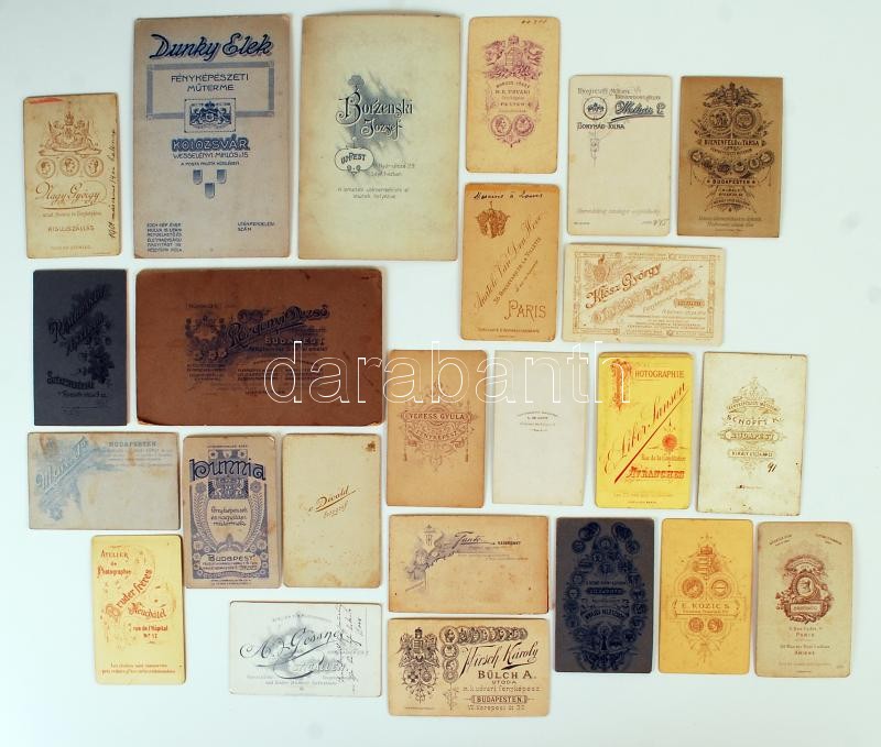 cca 1860-1900 29 db keményhátú fotó, vizitkártya és nagyobb méretben különféle műtermekből / vintage photos