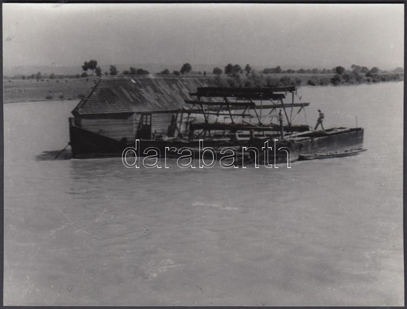 cca 1910/cca 1970 Vízimalom a Dunára telepített állóhajón, 13x17 cm