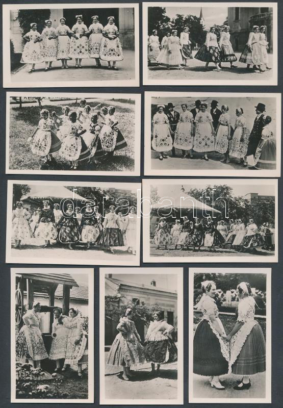 cca 1930-1940 Kalocsai népviselet, 10 db fotó, hátoldalon feliratozva,...
