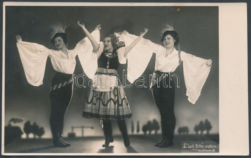 cca 1930-1940 L'art fotó salon, Bp., Artisták magyaros ruhában, 18x11 ...