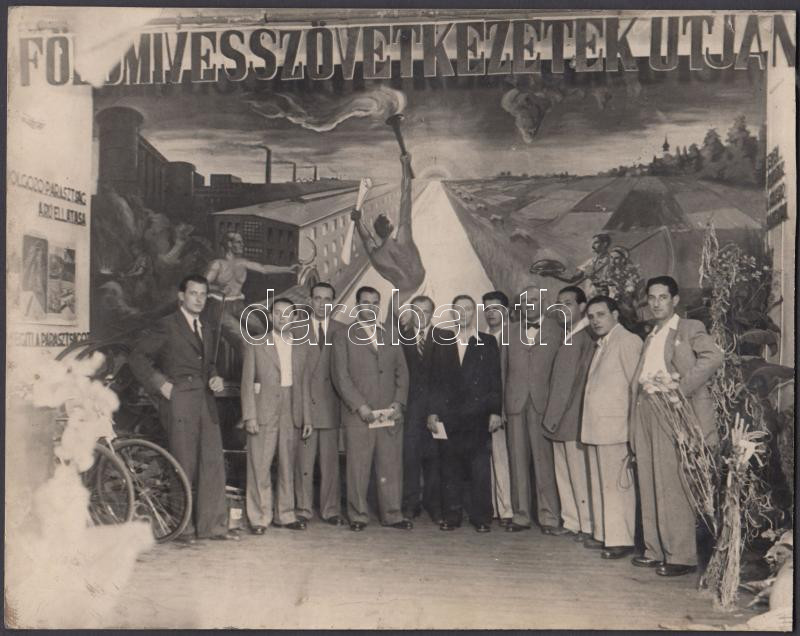 cca 1950 A földműves-szövetkezetek útján, a jövőbe vezető (festett) fé... https://www.darabanth.com/en/220-Online-auction/220.0/Other-collectibles/Photo~10013/cca-1950-A-foldmuves-szovetkezetek-utjan-a-jovobe-vezeto-festett-fenyes-ut-bal-oldalan~II941139