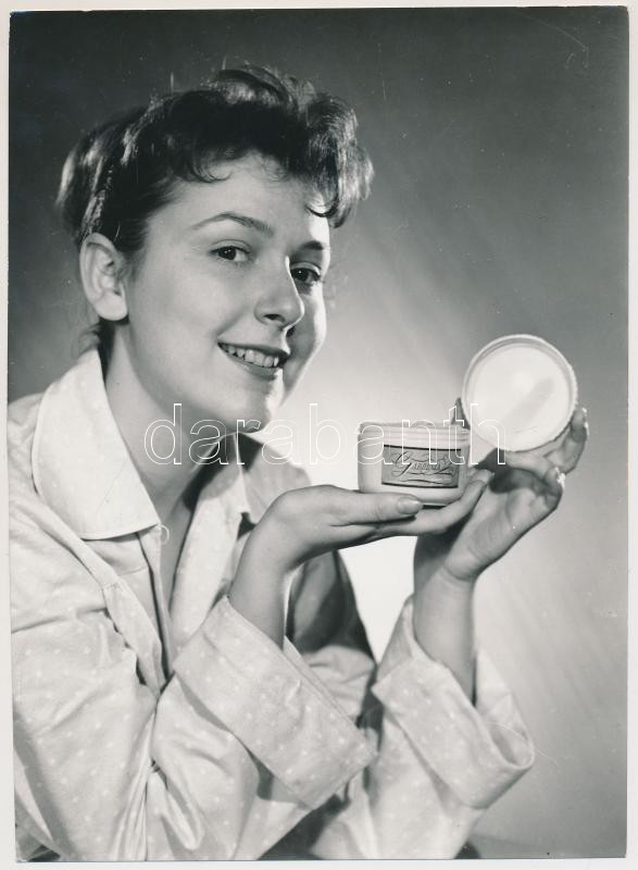 cca 1950 Dr. Csörgeő Tibor (1869-1968): Gardénia, az éjszakai krém, jelzés nélküli vintage reklámfotó a szerző hagyatékából, 24x18 cm