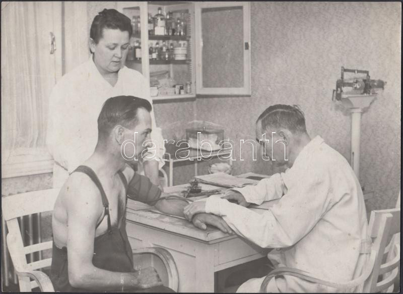 cca 1950 Tiszavölgyi József: Üzemorvos, pecséttel jelzett vintage fotó, 17x23,5 cm