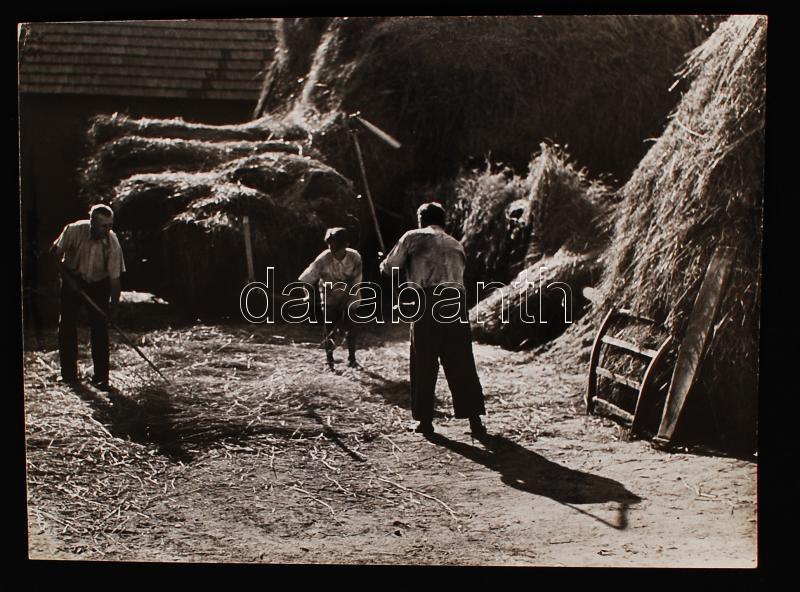 cca 1955 Körmendy Imre: Cséplők. (kis hiba saroknál) 30x40 cm