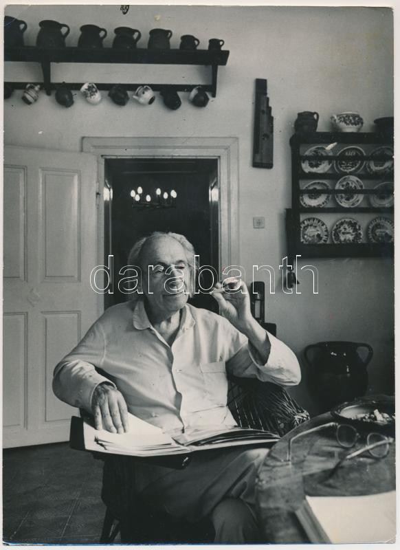 cca 1970 Balla Demeter(1931-): Déry Tibor(1894-1977) Kossuth- és Baumgarten-díjas magyar író, pecséttel jelzett fotó, hátoldalon feliratozva, 24x17 cm