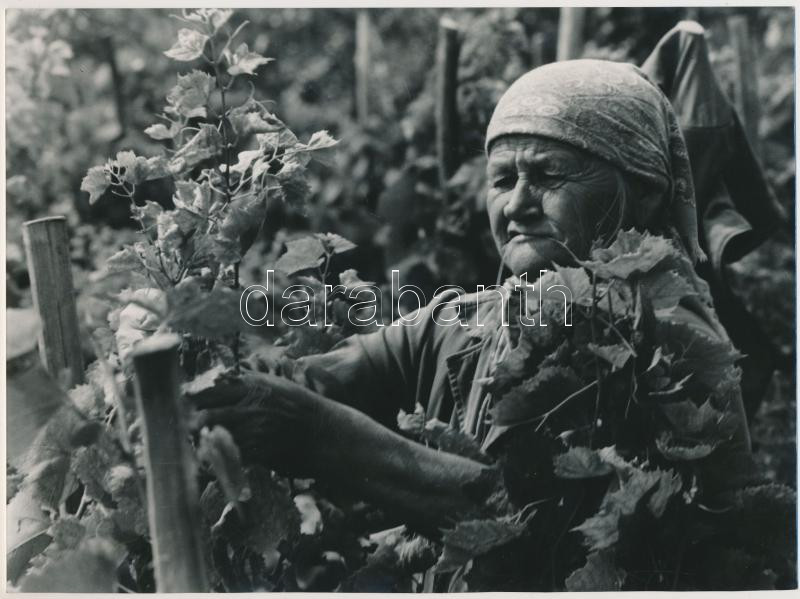 cca 1975 Baricz Katalin: Szőlőkötözés Kőszegen, feliratozott vintage f...