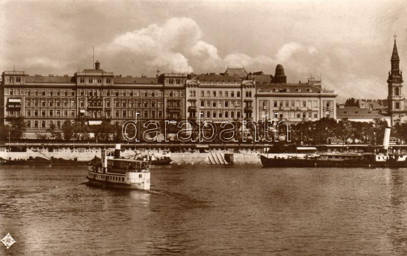 Budapest V. Hungária, Bristol és Carlton szállók, gőzhajó (ragasztónyo...