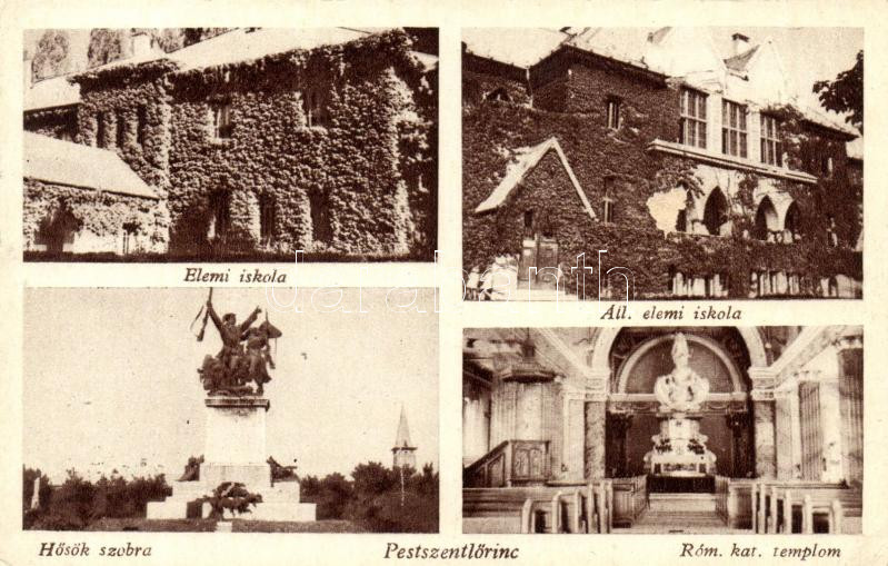 Budapest XVIII. Pestszentlőrinc, elemi iskola, Hősök szobra, Római kat...