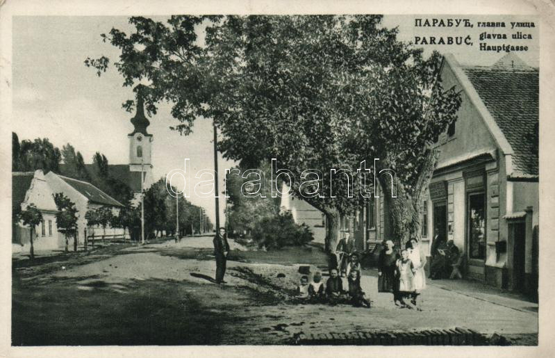 Paripás, Parabuc (Ratkovo); Fő utca, Glavna ulica / main street, shop ...