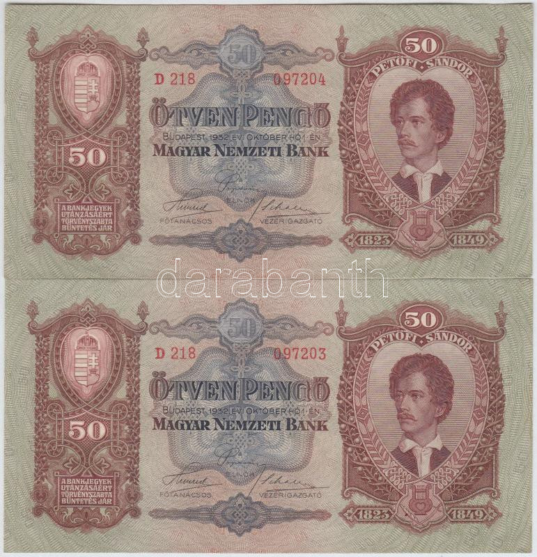 1932. 50P (2x) egymásutáni sorszámmal T:I