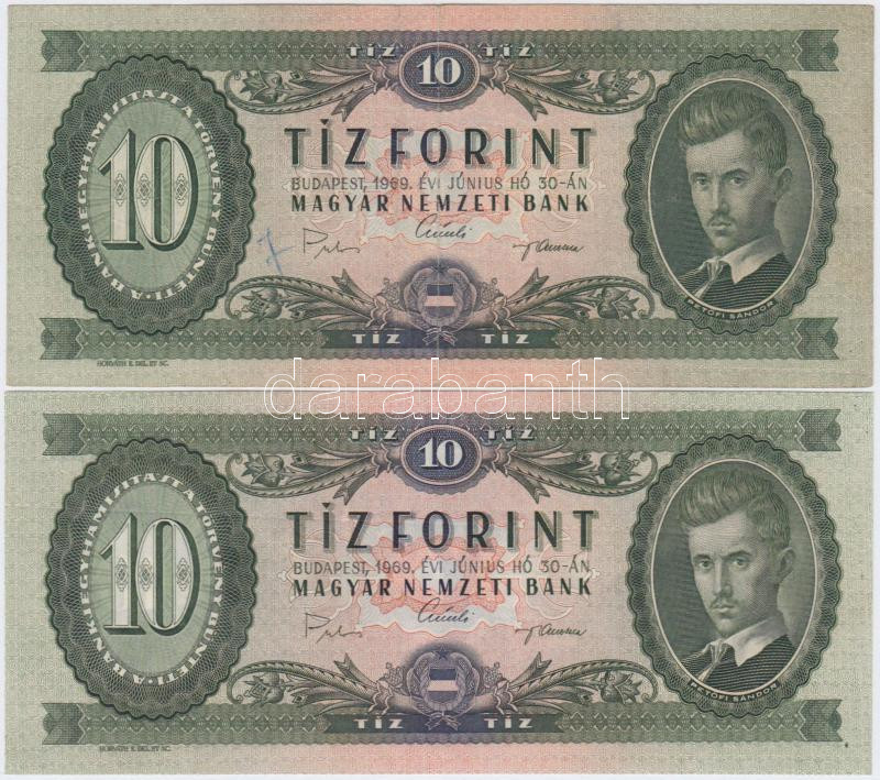 1969. 10Ft (2x) az egyik gyári papírránccal T:II,III