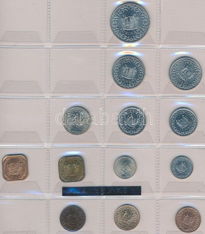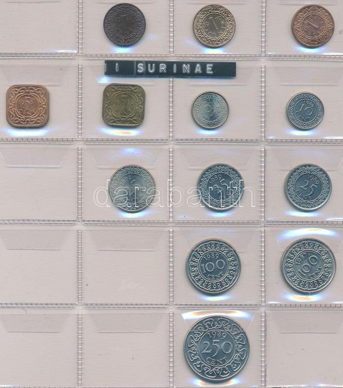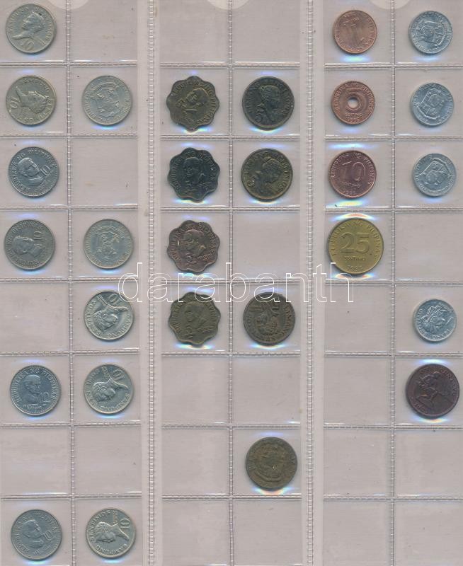 Vegyes fémpénz gyűjtemény klf országokból 13db berakólapon, közte Paraguay, Panama, Suriname, Chile pénzei T:vegyes