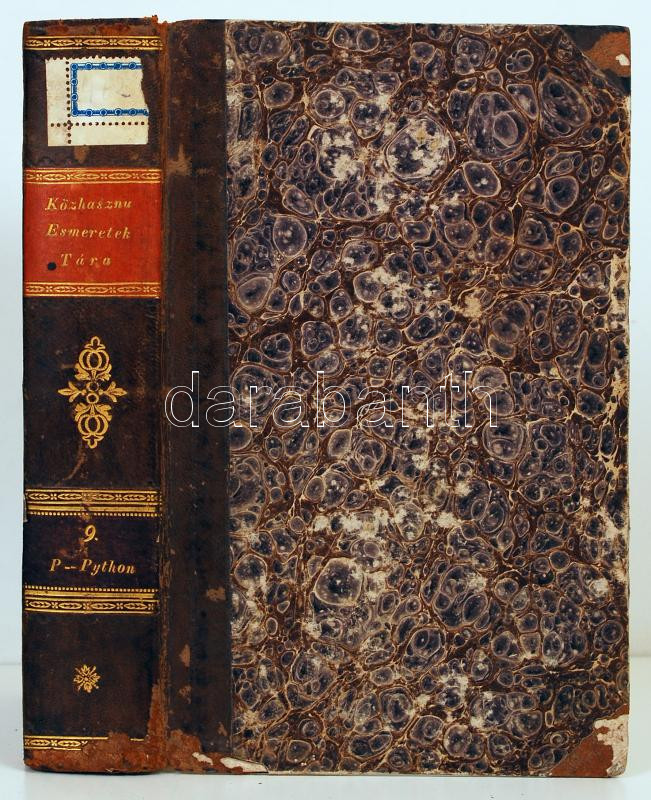 Közhasznú esmeretek tára. A' Conversations-Lexicon szerént Magyarországra alkalmaztatva. 9. köt.: P-Python. Pest, 1833, Wigand Ottó. Tulajdonosi bejegyzéssel. Kicsit kopott aranyozott gerincű félbőr kötésben, egyébként jó állapotban.