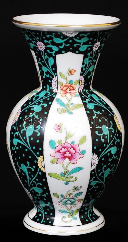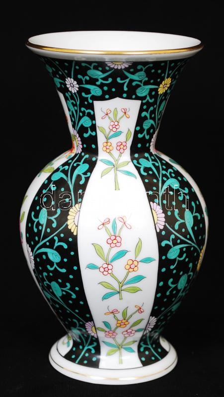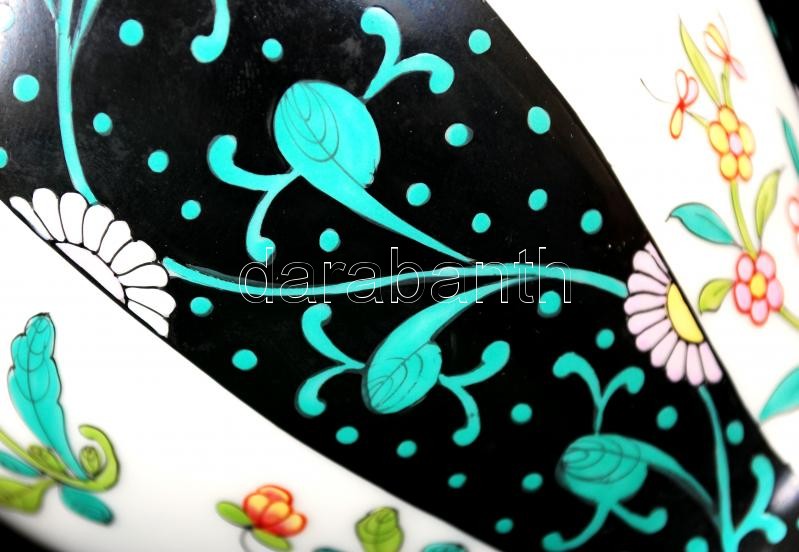 Herendi kézzel festett porcelán "Siang Noir" váza, hibátlan, jelzett, ...