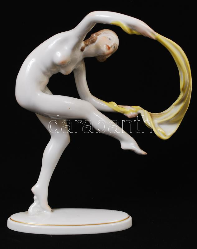 Herendi táncoló nő, kézzel festett, jelzett, hibátlan, / Herend chinaw...