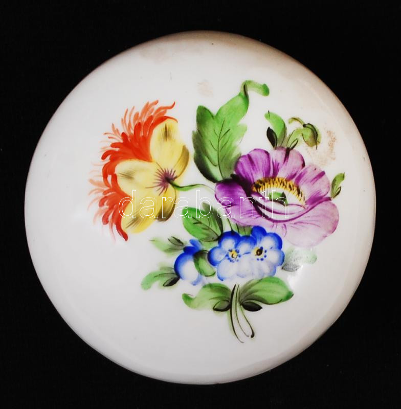 Herendi virágmintás kézzel festett porcelán bonbonniere, kopásnyomokka...