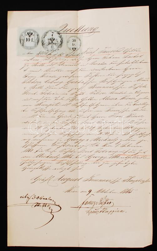 1865 Bécsi okmány 17,50Ft okmánybélyeggel