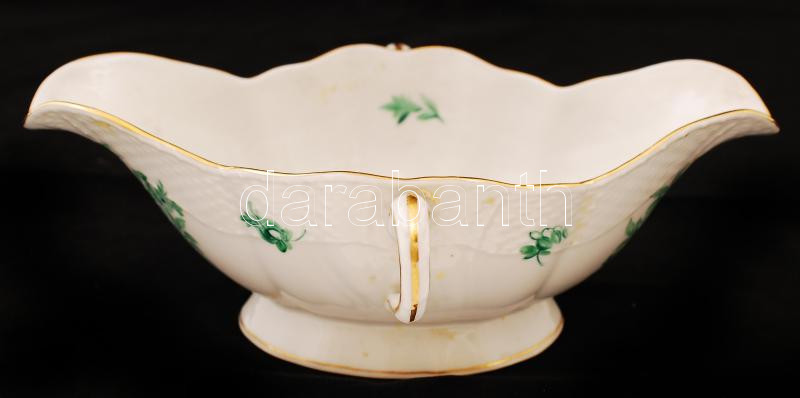 Herendi virág mintás szószos tál, kézzel festett, jelzett (koronás), hibátlan, 15×22,5 cm