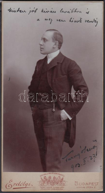 1903 Erdélyi Mór (Budapest): Faragó Jenő (1872-1940) újságíró, író, m... https://www.darabanth.com/en/222-Online-auction/222.0/Other-collectibles/Photo~20032/1903-Erdelyi-Mor-Budapest-Farago-Jeno-1872-1940-ujsagiro-iro-mufordito-alairt~II957399
