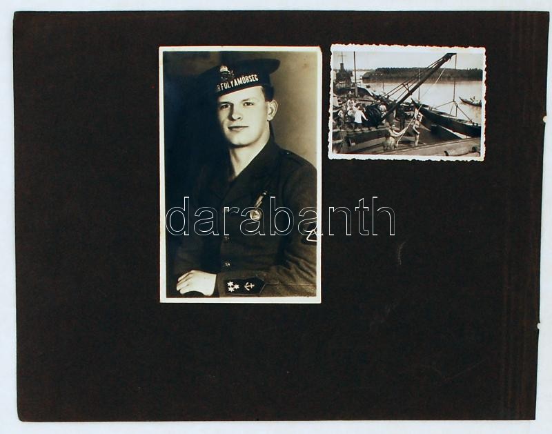 cca 1930-1940 Magyar királyi folyamőr temetése, 9 db fotó albumlapra r...