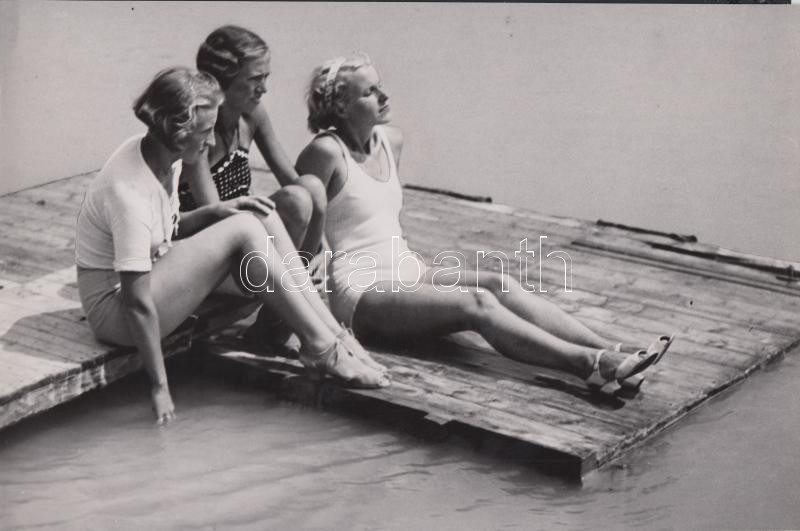 cca 1935 Budapest, Római part, a vakáció első gondtalan délelőttje, jelzetlen fotó Reich Péter Cornel hagyatékából, 20x30 cm