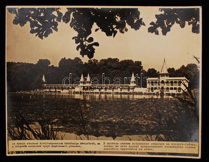 cca 1950 Hévízfürdő, idegenforgalmi reklámfotó magyarul és oroszul feliratozva, 23x30 cm