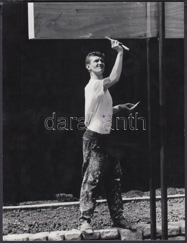 cca 1970 Magyar Alfréd: A festő, feliratozott vintage fotóművészeti al...