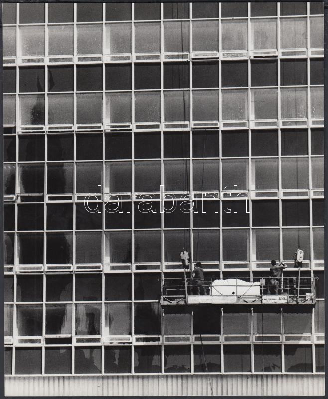 cca 1980 Gotthard Schneider: Épület üvegezők, pecséttel jelzett vintage fotóművészeti alkotás, 21x17 cm