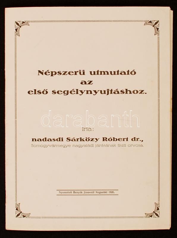 https://www.darabanth.com/en/222-Online-auction/222.0/Other-collectibles/Printed-Materials~20008/1926-Nepszeru-utmutato-az-elso-segelynyujtashoz-irta-Nadasdi-Sarkozy-Robert-dr-Somogyv~II958701