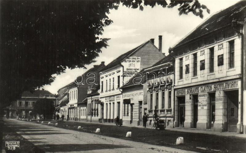 Csorna, Erzsébet utca, Frey Sándor bútorraktára, üzletek, Martincsevic...