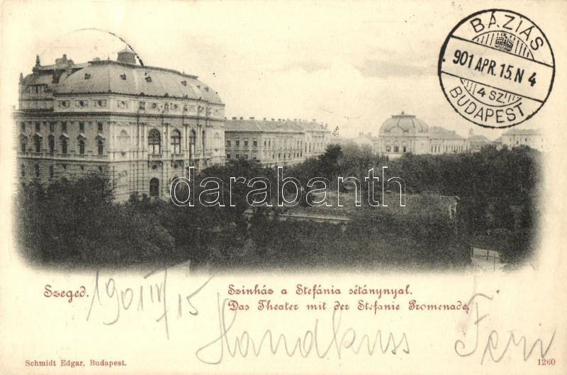 Szeged színház a Stefánia sétánnyal