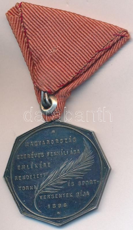 Description: Giovanni Morelli (1816-1891) / Exner Károly (1850-1919) / Scheid. G.A. (Ezüstárú és Éremgyár) 1896. "Magyarország ezeréves fennállása emlékére rendezett torna- és sportversenyek díja" Ag díjérem mellszalaggal T:2