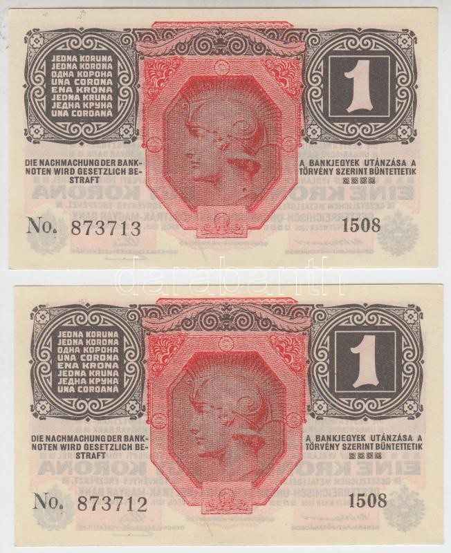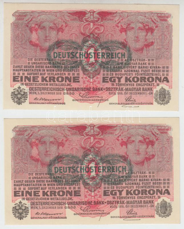 https://www.darabanth.com/en/223-Online-auction/223.0/Numismatics/Hungarian-Banknotes~10008/1916-1K-Deutschosterreich-felulbelyegzessel-2x-sorszamkovetok-TI-I-hajtatlanok~II968104