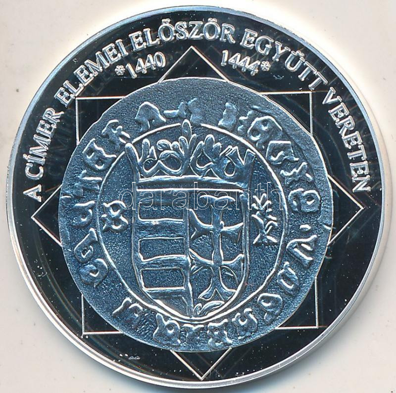 DN "A magyar nemzet pénzérméi - A címer elemei először együtt egy vereten 1440-1444" Ag emlékérem tanúsítvánnyal (10,37g/0,999/35mm) T:PP