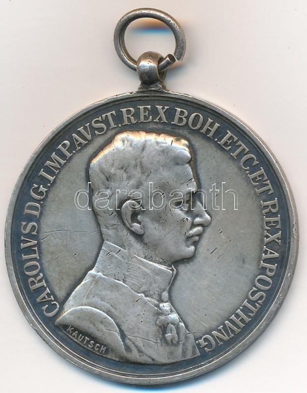 1917. "Károly Ezüst Vitézségi Érem I. osztálya" fémjel nélküli ezüst k... https://www.darabanth.com/en/223-Online-auction/223.0/Numismatics/Military~10017/1917-Karoly-Ezust-Vitezsegi-Erem-I-osztalya-femjel-nelkuli-ezust-kituntetes-mellszal~II973752